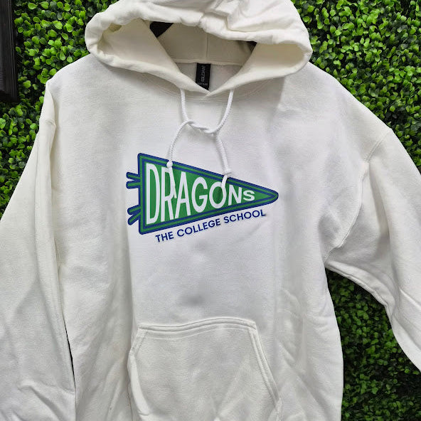 Classic hooded sweatshirt with fabric "Dragons" pennant on the front.